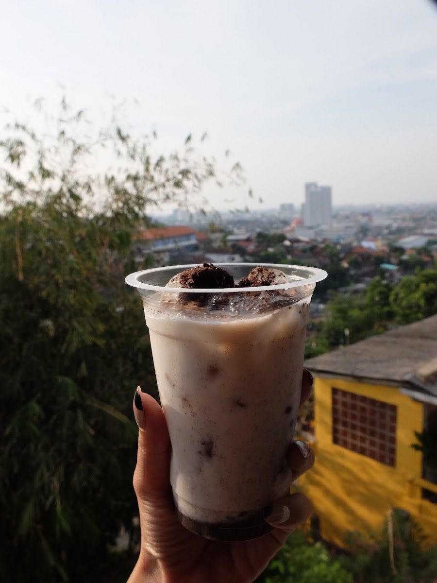 The ambiance is a delightful union of tranquility and sociability, ideal for hanging out with friends or enjoying a moment of solitude while soaking in the stunning sunset views over the city. Imagine sipping on a refreshing Thai Tea or a whimsical Redvelvet Milk, all while surrounded by a calm atmosphere that feels worlds away from the bustling city streets.